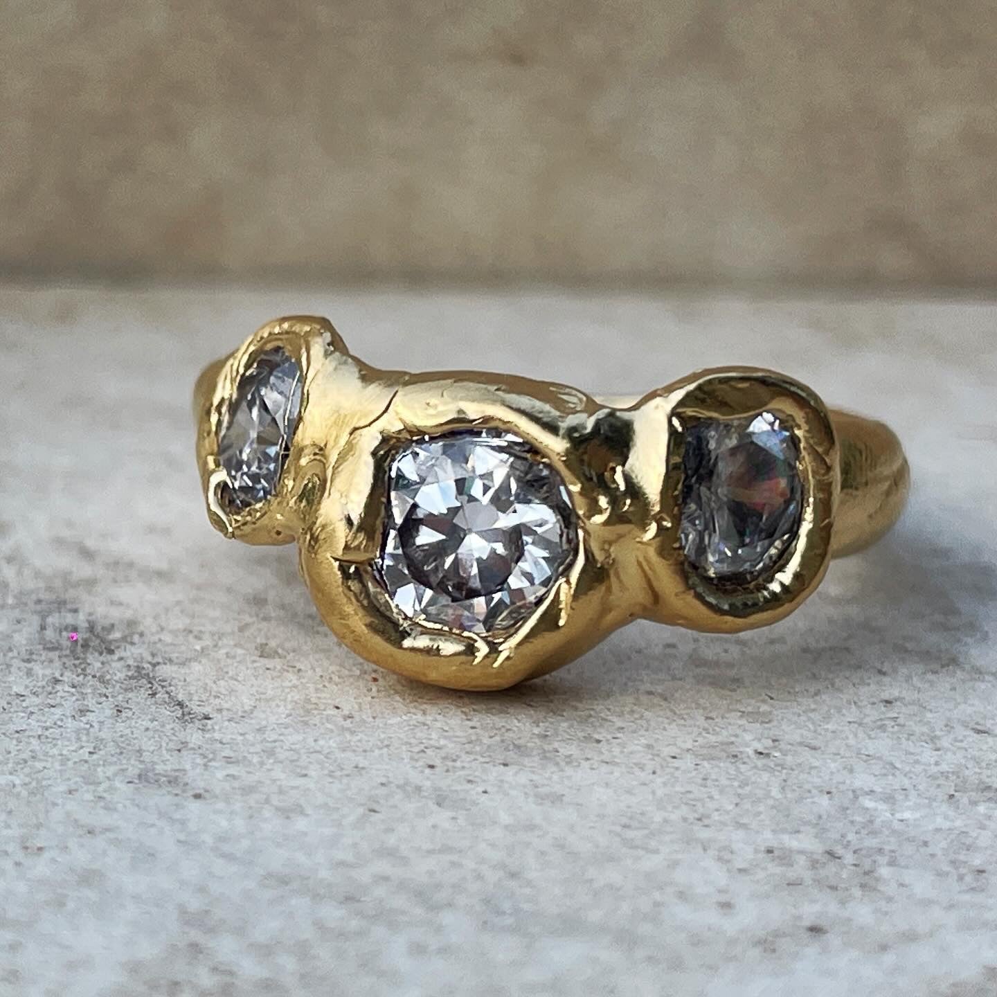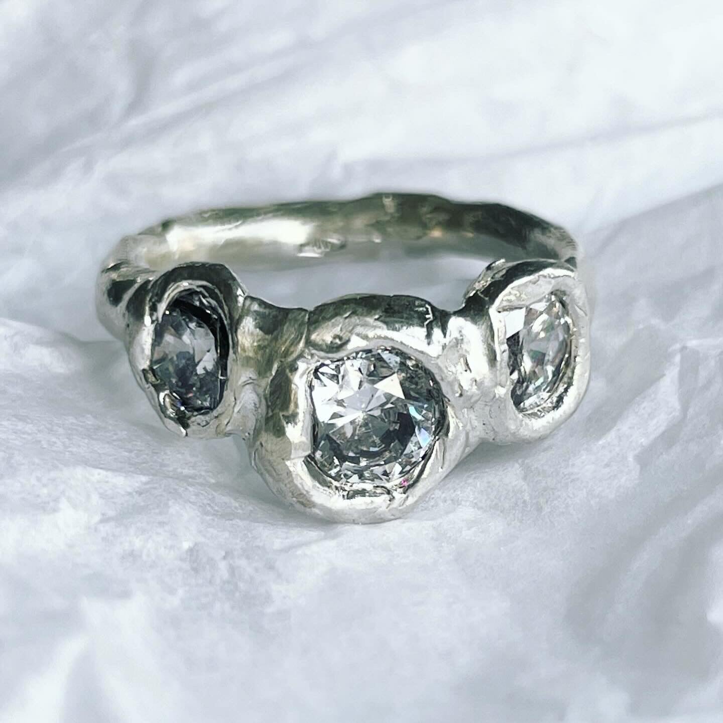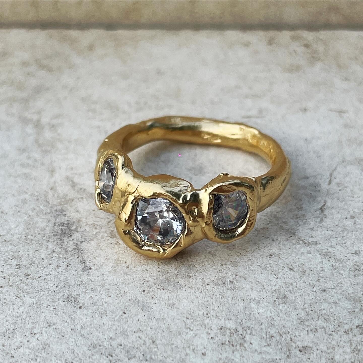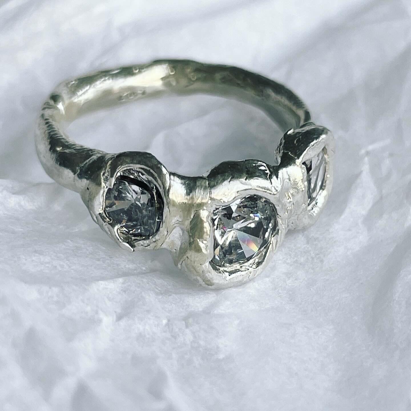 Especially meaningful because it speaks to a timeless, enduring love, celebrating both the history of the relationship and the ongoing commitment to each other’s future. This ring is a perfect ceremonial piece, an alternative engagement or wedding band and can be stacked with a simple band or bigger statement pieces. The stones that sparkle along the band are molten within the metal, not perfectly set, wich will make every piece unique and give it an effortless look.