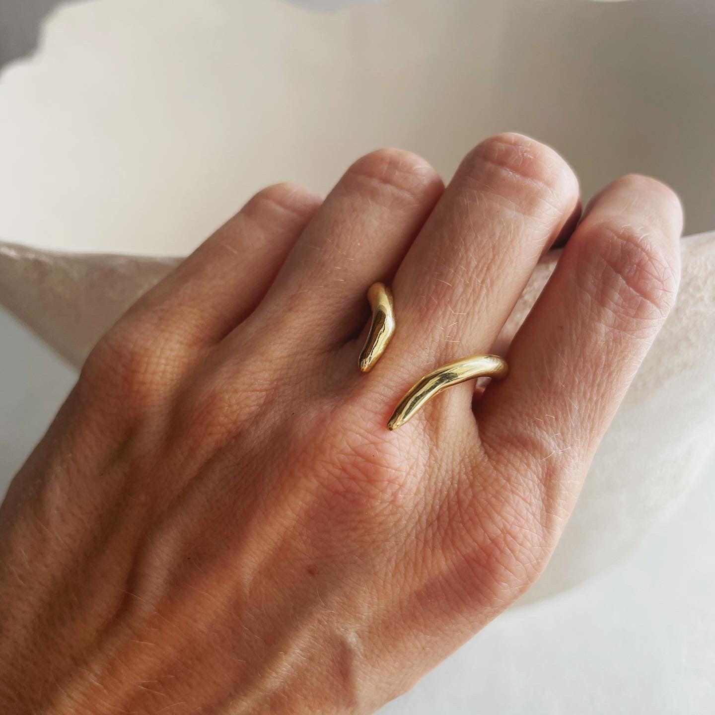 This open ring gracefully hugs and elongates your fingers, it unites the elegance of movements of anemones "dancing" in the water with the thorns of some dune plants, developed to defend themselves from predators. Ideal to be stacked with bold statement pieces or delicate solitaires, imparting an effortless charm that eschews any 'preppy' aesthetic. Crafted for comfort, it gently follows the natural contours of your bone structure, providing a snug fit that moves with you.