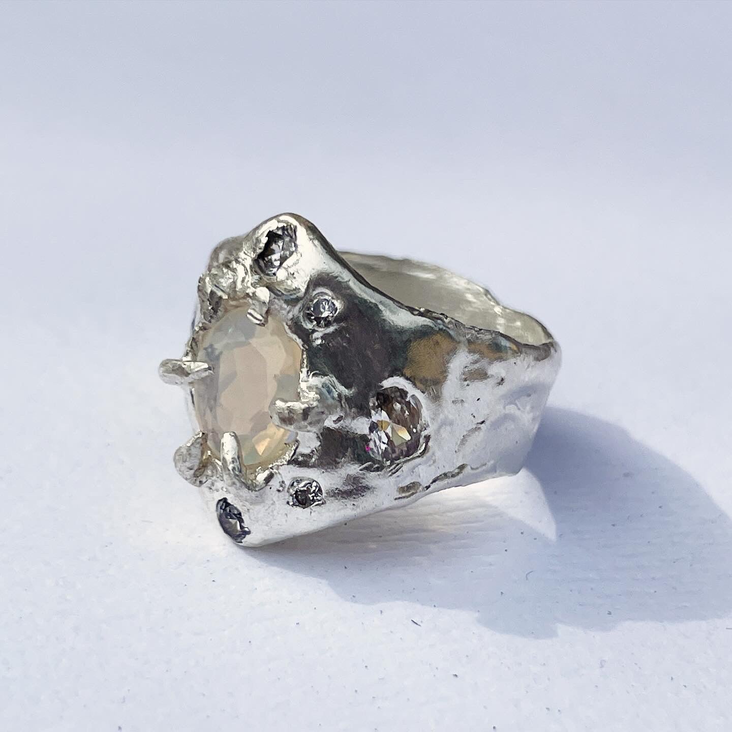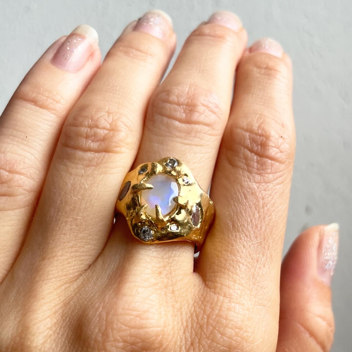 Made to order only! Each ring is handmade & made to order just for you, which means it will vary from the picture, making every piece unique. The chosen cast-not-set technique is meant to create an organic feel and one of a kind jewels. Please leave a note if you wish to personalize your piece with stones of a different color, size, or shape.