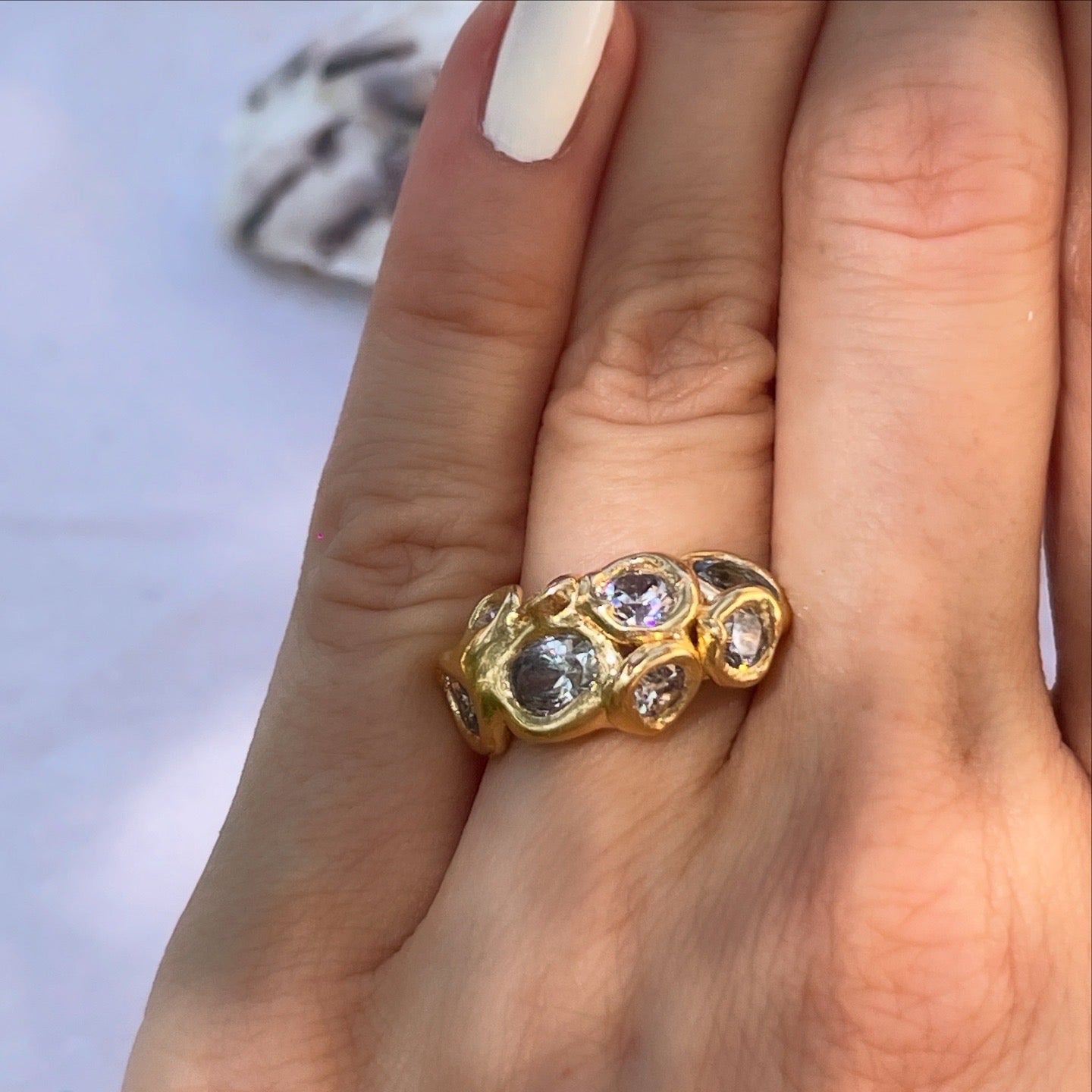 Each ring is handmade & in case your size is not currently available as a ready to ship time, it will be made to order just for you, which means it will slightly vary from the picture, making every piece unique. Therefore you can also request s certain kind or amount of stones to be set.