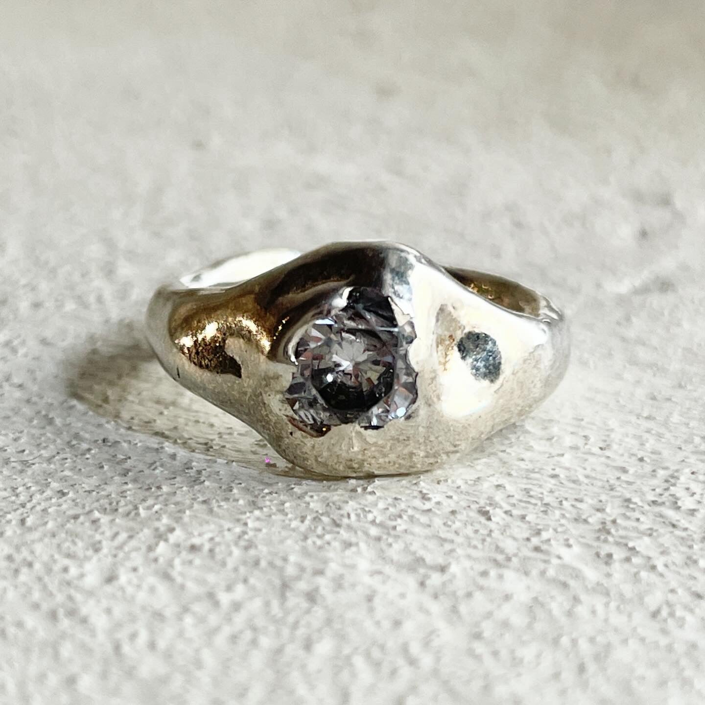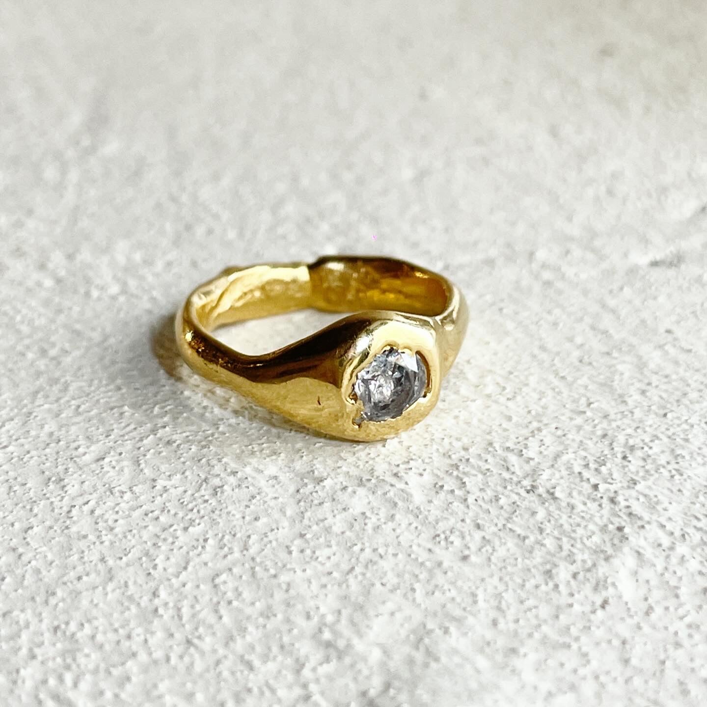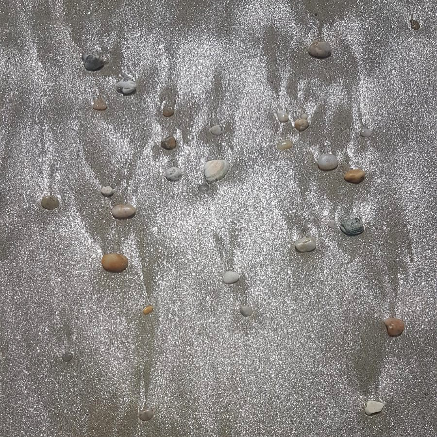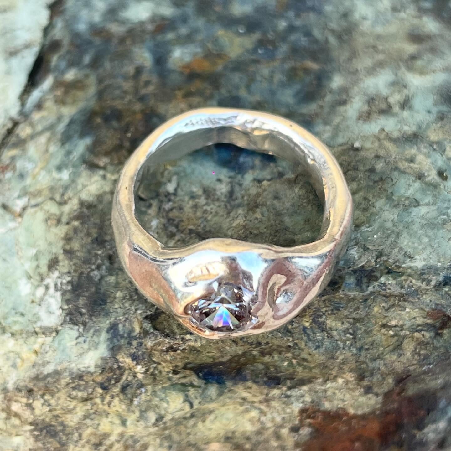 Most of this worlds treasures are hidden, it depends on us if we find them and thus, what is a treasure to someone is of no use to another. Treasures are so personal, their value is defined by who cherishes them. The bright diamond cut stone is partly covered by the liquid metal, like little stones and shells on a beach covered with sand, revealed by the ongoing movements of the waves at shore that bring to light the seas treasures.
