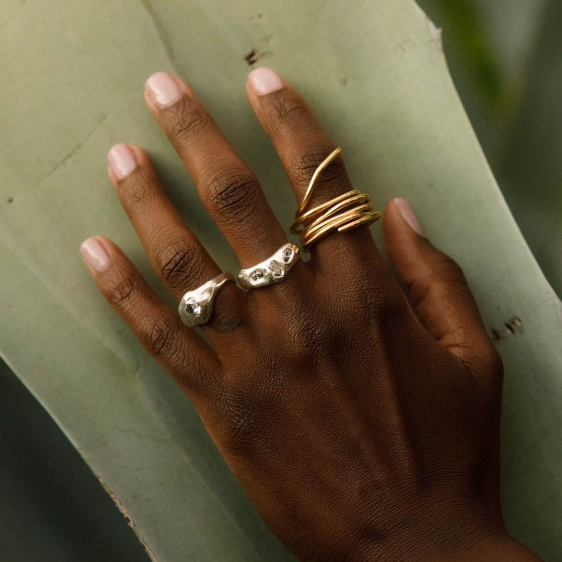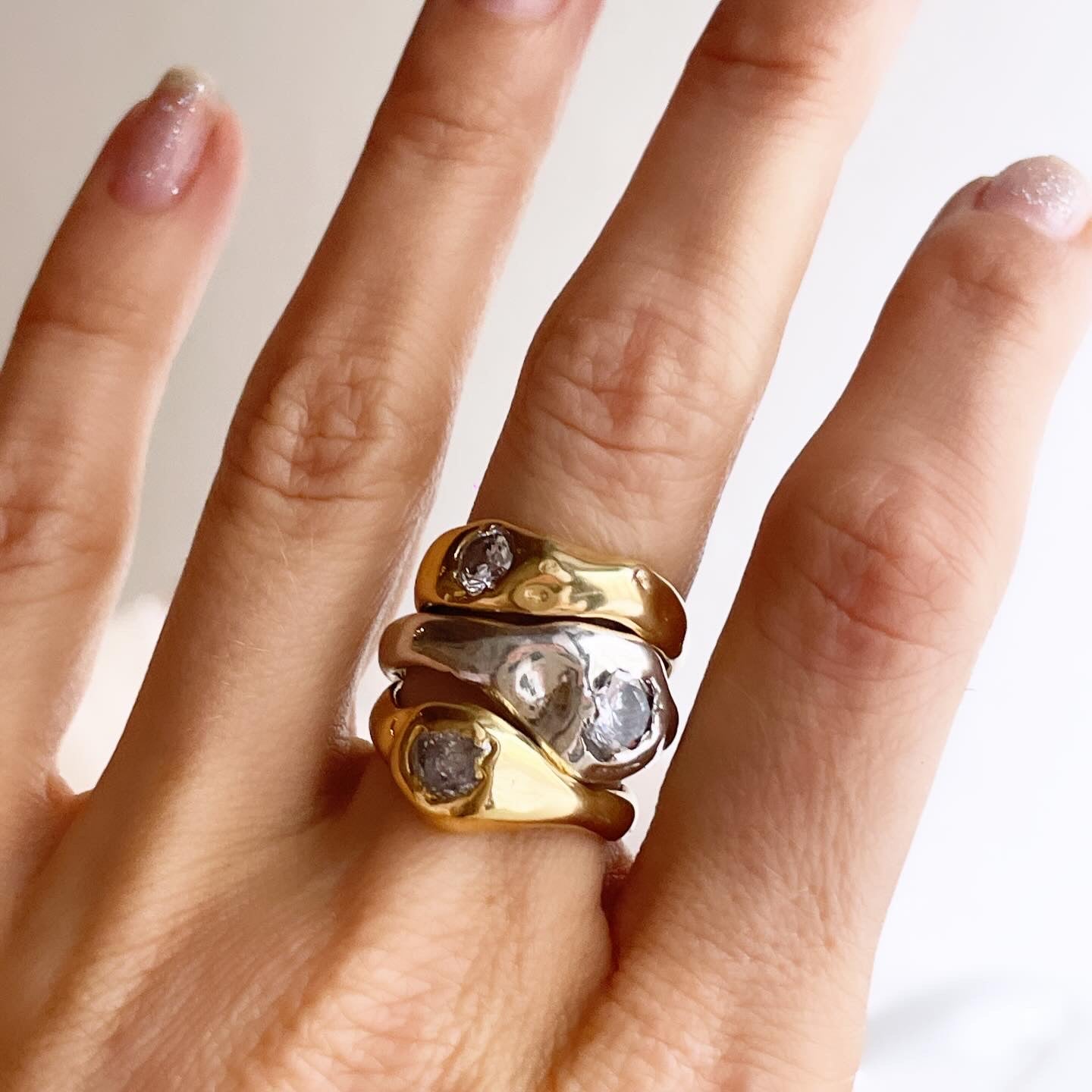 Every ring is absolutely unique, no liquid metal is the same, please keep that in mind if you order yours... it is gonna have an individual shape just for you.