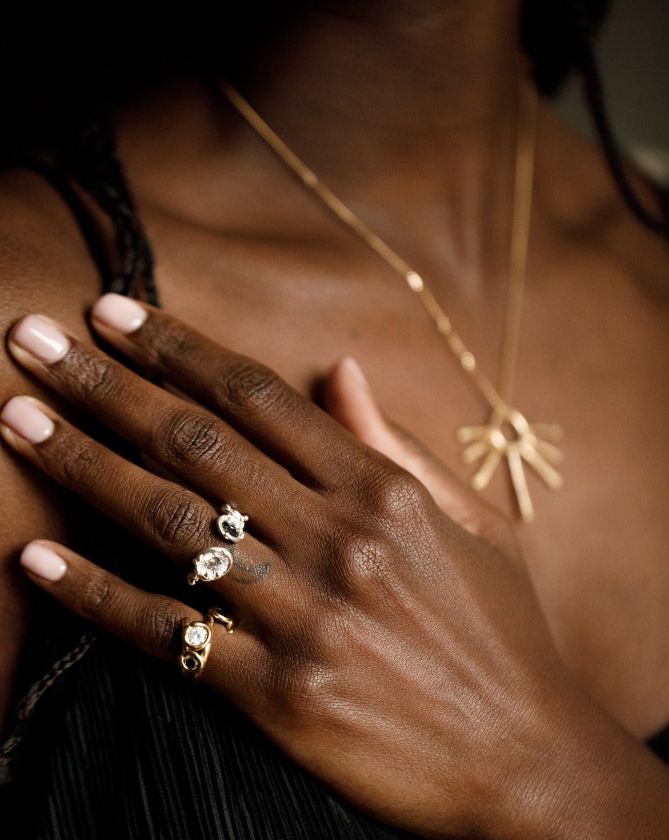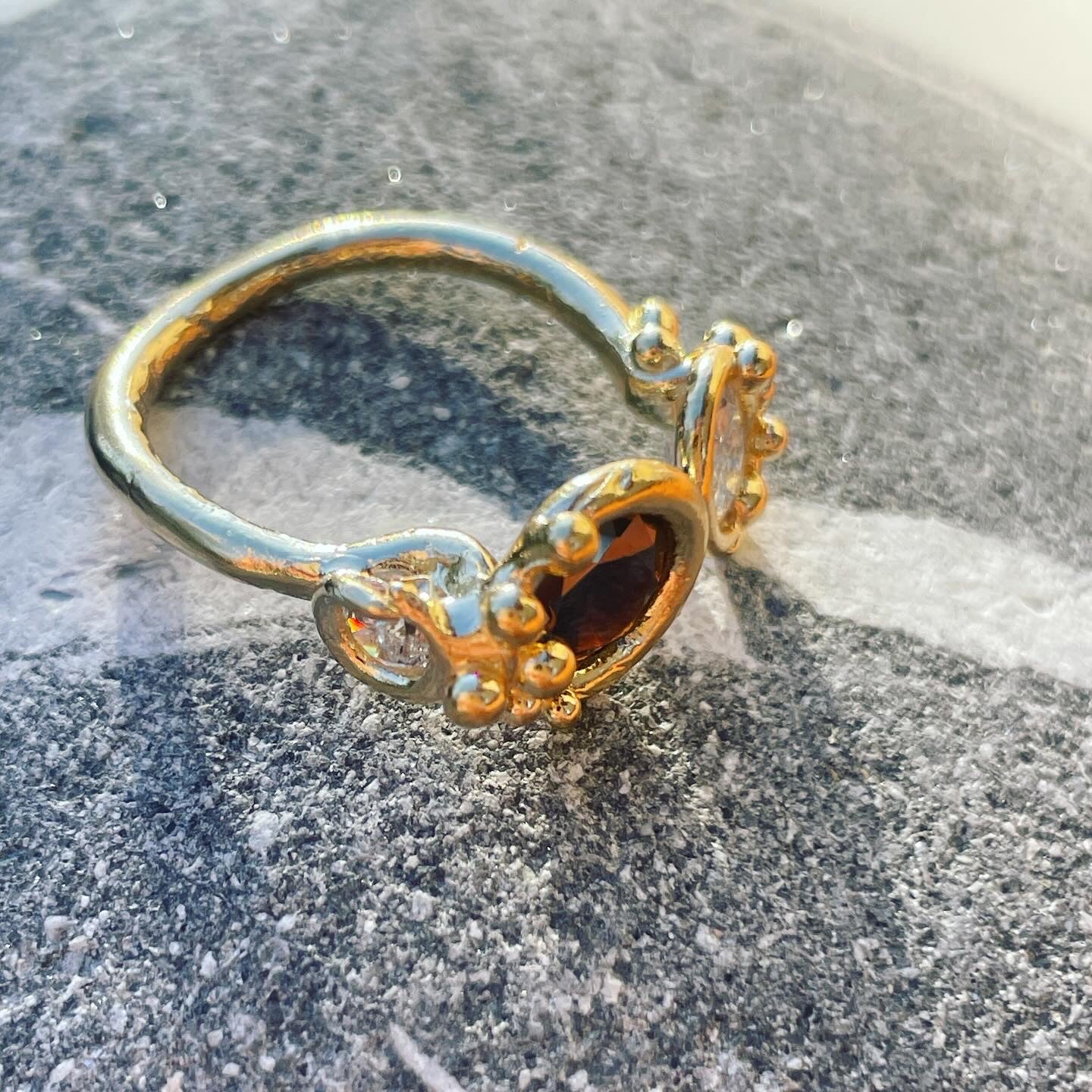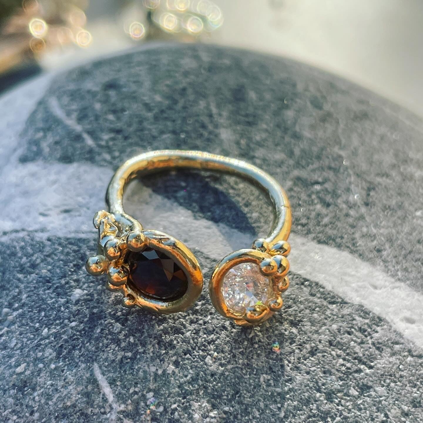Each ring is handmade, and except for a few ready-to-ship pieces, it is made to order just for you, which means it will slightly vary from the picture, making every piece unique. The chosen cast-not-set technique is meant to create an organic feel and one of a kind jewels.