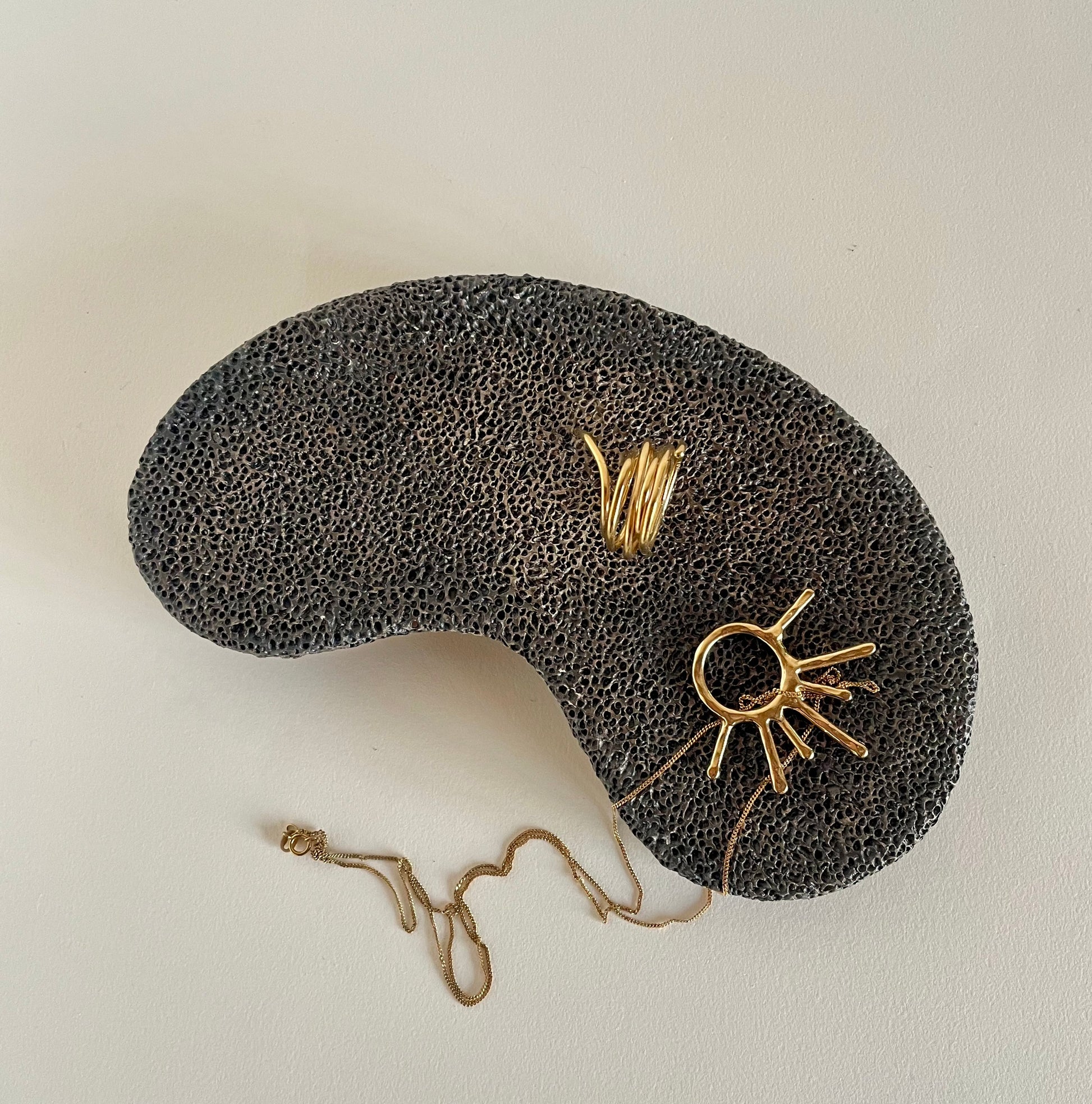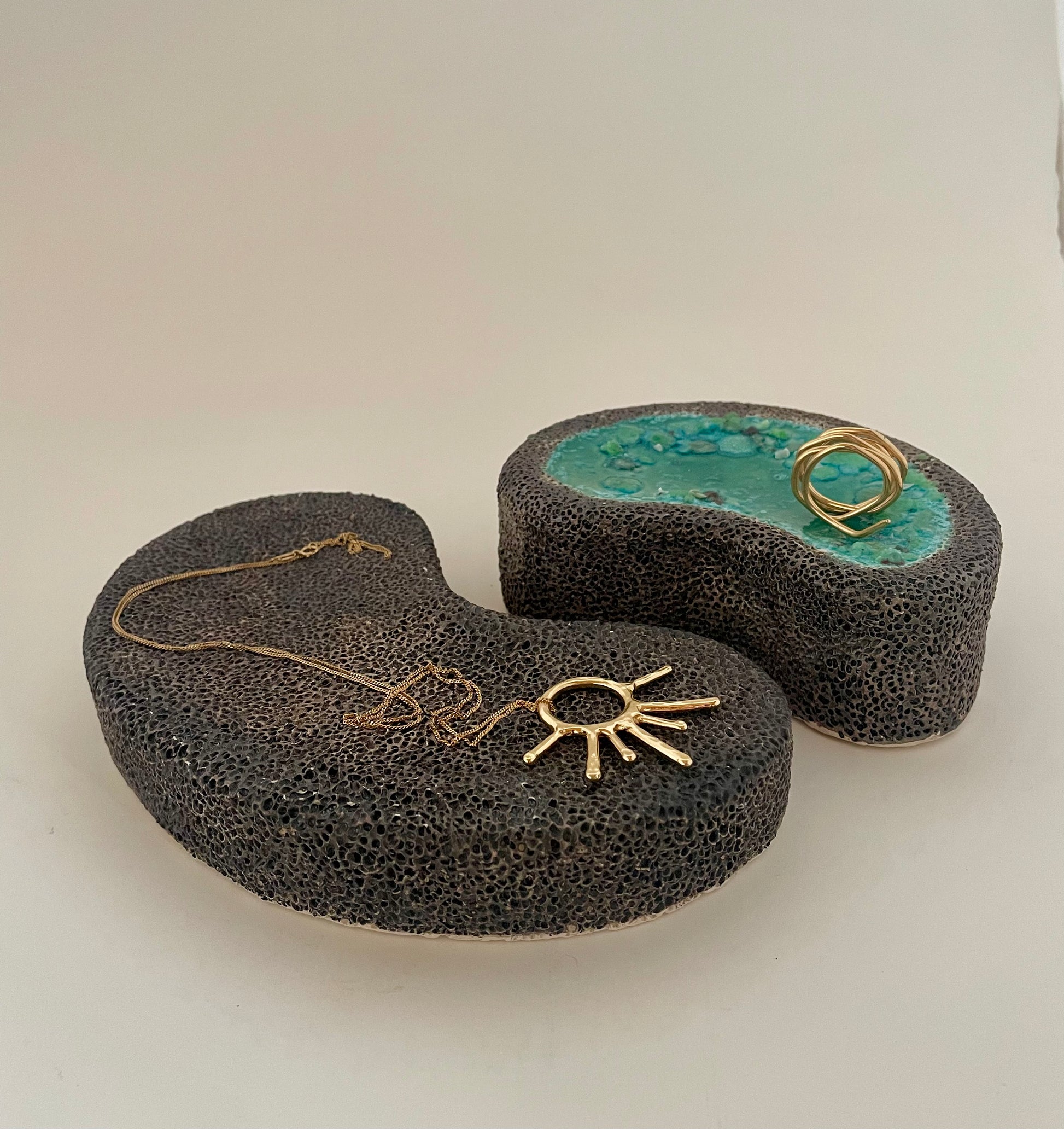 The Tide Pools are one of a kind objects & jewelry trays handmade by Teresa Lobelia D’arienzo, an Italian Ceramic Artist who shared her studio in Arezzo with Céline ever since she started making jewelry. Right from the start both artists did not only share the creative space but also the same vision about aesthetics, textures and the value of handcraft.