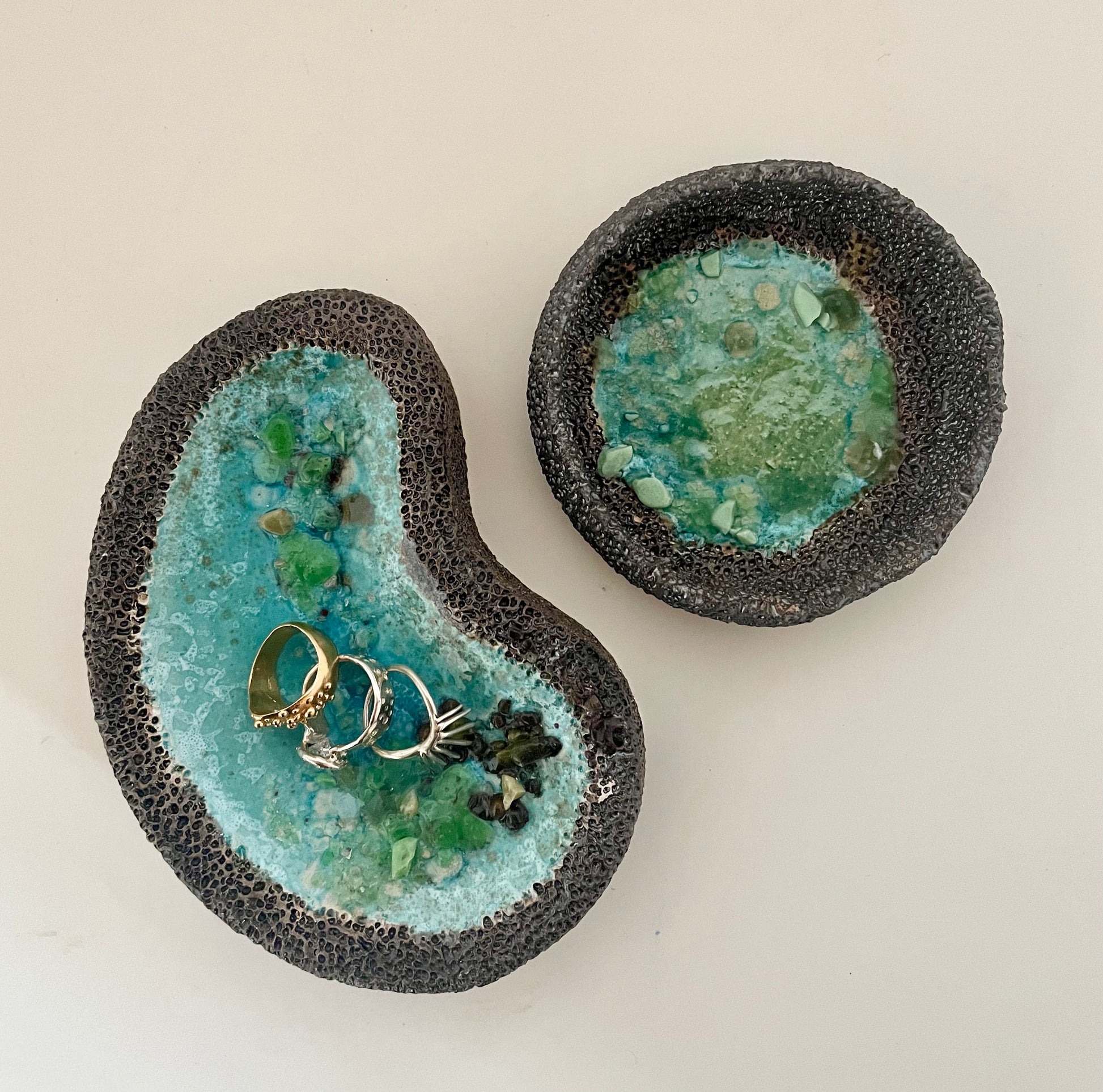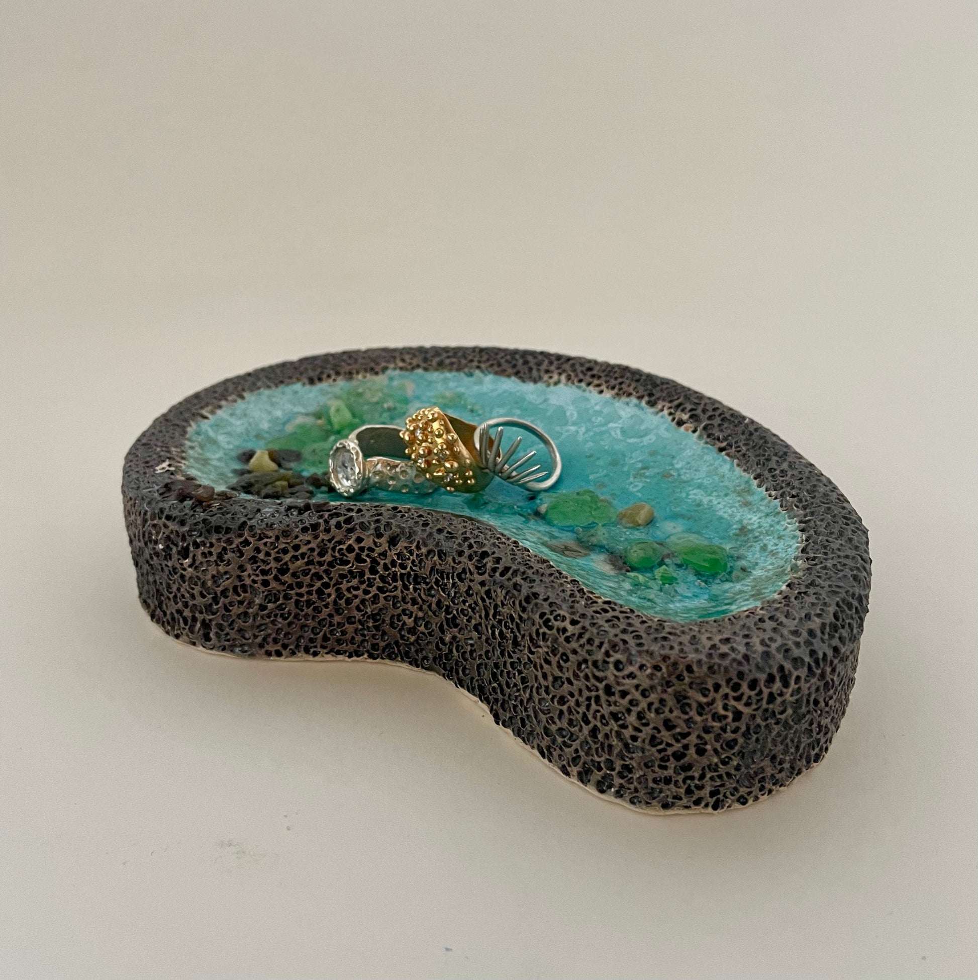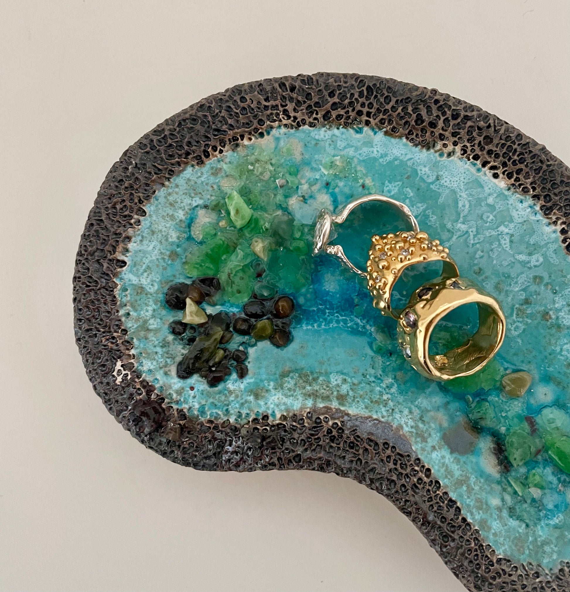 The Tide Pools are one of a kind objects & jewelry trays handmade by Teresa Lobelia D’arienzo, an Italian Ceramic Artist who shared her studio in Arezzo with Céline ever since she started making jewelry. Right from the start both artists did not only share the creative space but also the same vision about aesthetics, textures and the value of handcraft.