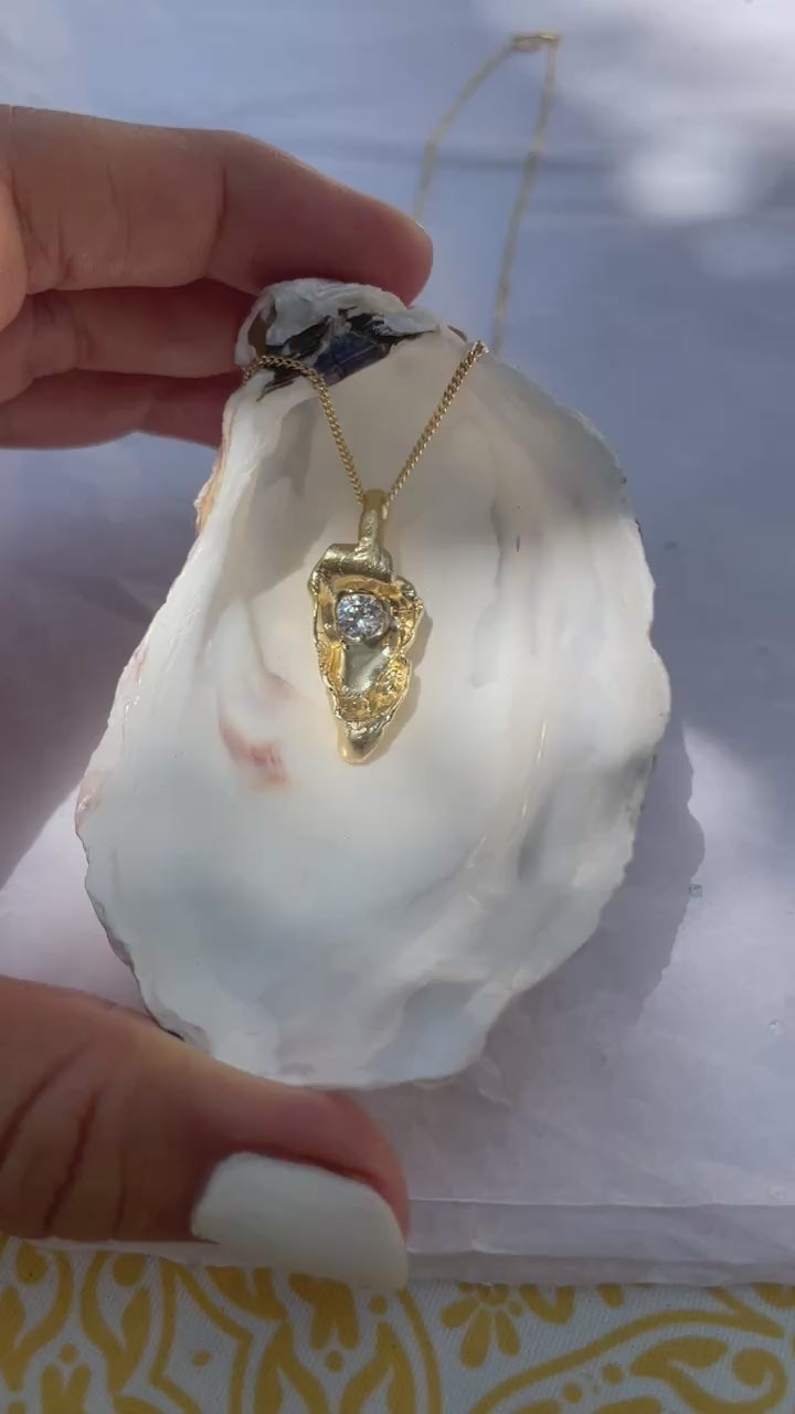 A magic little creature born in the waters of the salty sea, offering a sparkling treasure behind her rough looking shell.