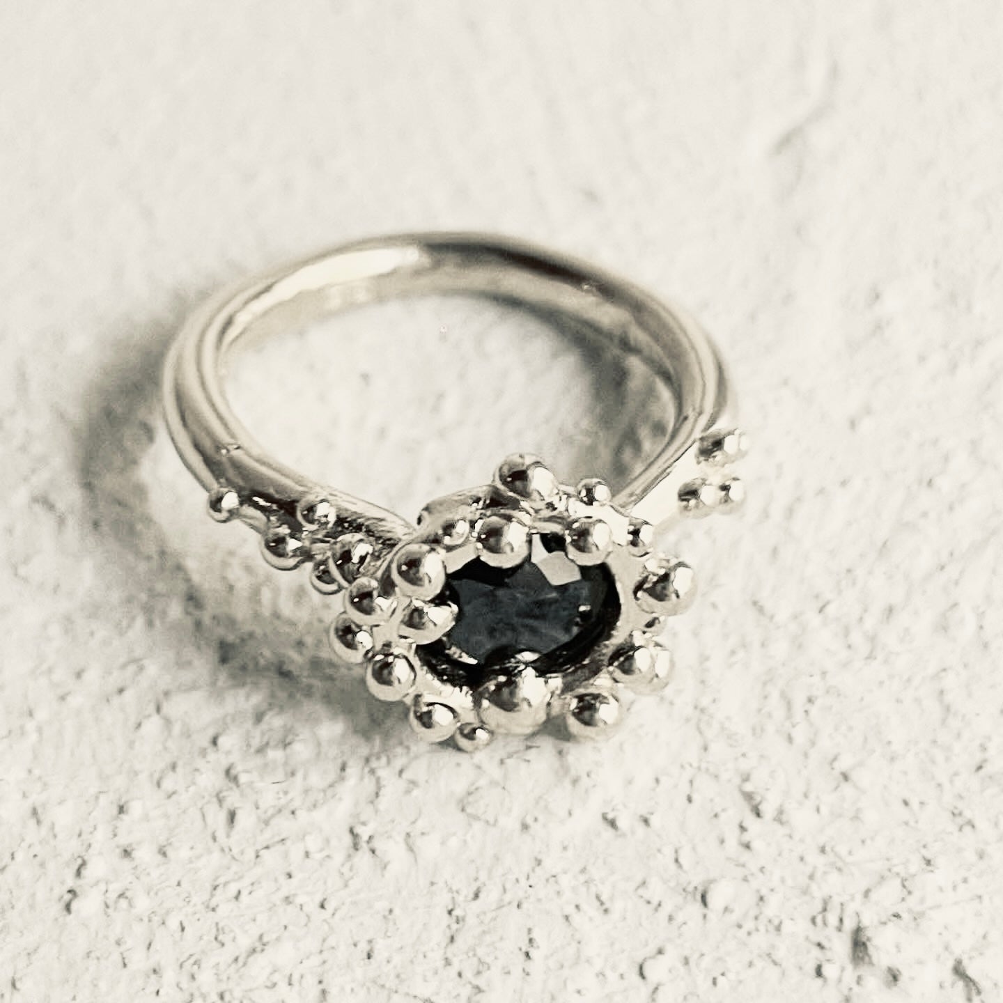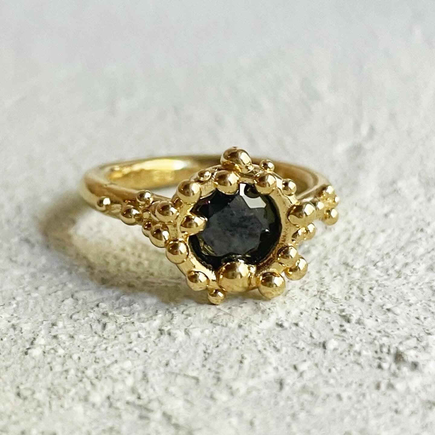Each ring is handmade, every drop looks different, every single ring will be unique as it it is made to order just for you, which means they will slightly vary from the picture, making every piece individual. The chosen cast-not-set technique is meant to create an organic feel and one of a kind jewels.