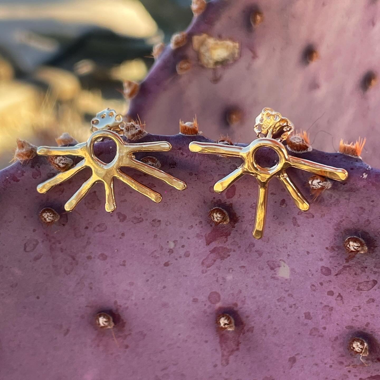 Those little studs are inspired by the bright sunrises and shimmering sunsets in Brittany, Bretagne, when the sun kisses the Atlantic. The rays gently caress the sea, painting its waters silver and golden for a fleeting moment before disappearing, only to rise again in the morning. They also draw inspiration from Celtic symbology and pay homage to Mother Nature.