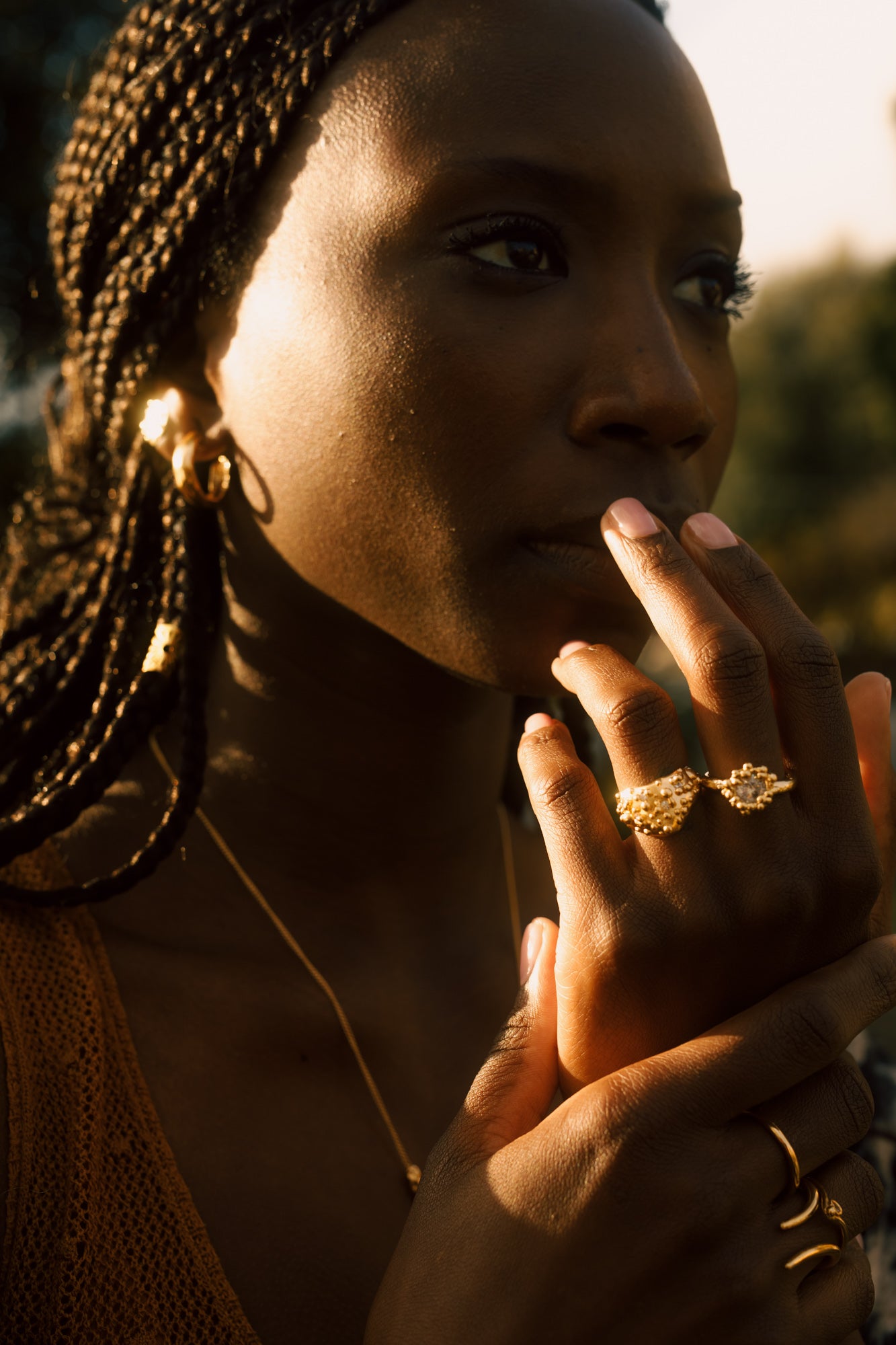 The bubbles on this ring seem to move with the waters, like sea foam that washes up shore. 5 tiny stars reflect on the surface at night and unite in one ring the universe and the secrets of deep sea that. The organic shapes brings the metal to live as if the Atlantic waves constantly splash its bubbles on your finger.